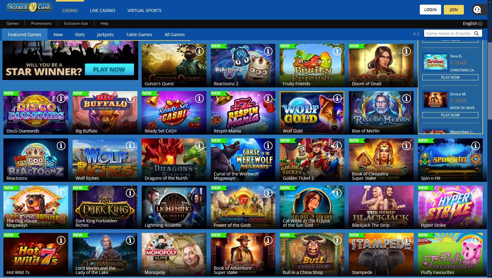Scratch2Cash Casino has been a presence in the online casino world since 2005, and it offers a wide range of games from more than 50 respected providers. This platform features titles from industry giants like Pragmatic Play, Amaya, Real Time Gaming, Microgaming, and many others. While slots constitute a significant portion of the game selection, Scratch2Cash also offers classic table games such as roulette, blackjack, and baccarat. However, it’s worth noting that the table game collection is relatively limited, with just 20 options available during the review.